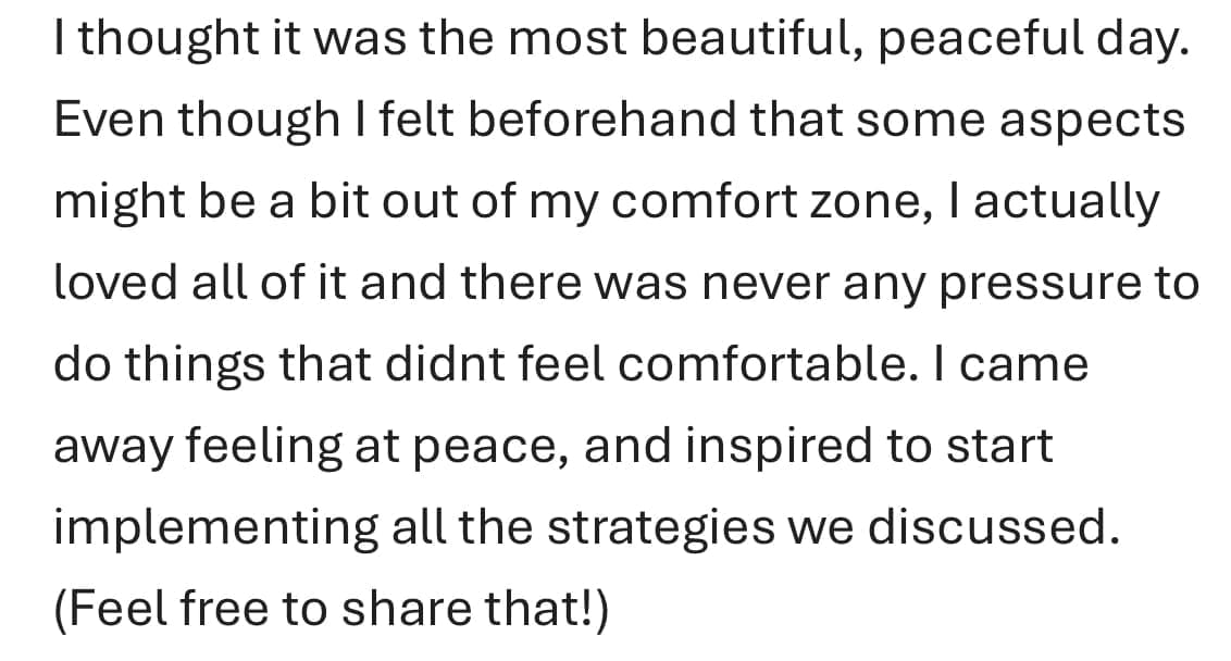 "Working with Sarah was pivotal in my healing journey. Her continuous support really allowed me to safely deepen my connection to self, my connection to the Divine and trust in the pathway unfolding for me. She provided tools that I continue to use daily. I am deeply grateful for Sarah and all she does! My highest recommendations is allowing her to support you on your journey."